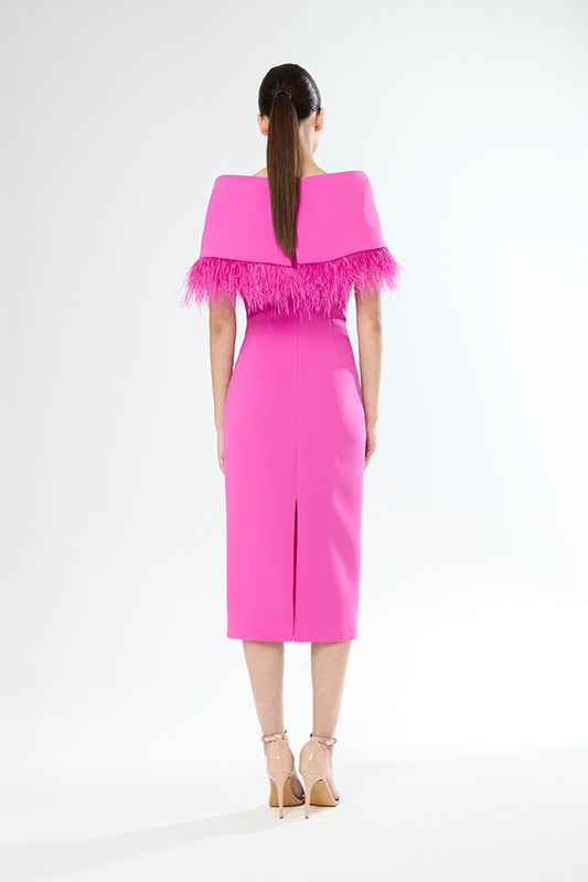 Carla Ruiz Pink Feather Cape Dress 51509