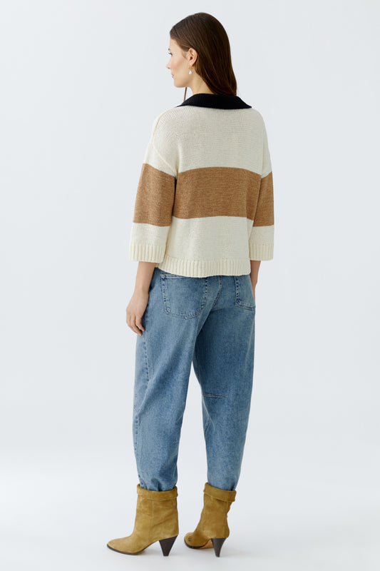 Oui Caramel Fine Knit V Neck Sweater 91927