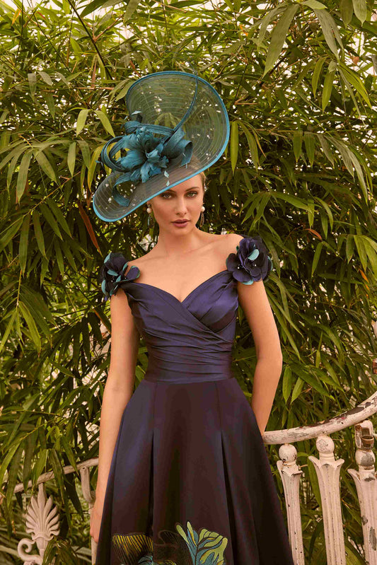 Veni Infantino Navy & Gold Off the Shoulder Dress 992212