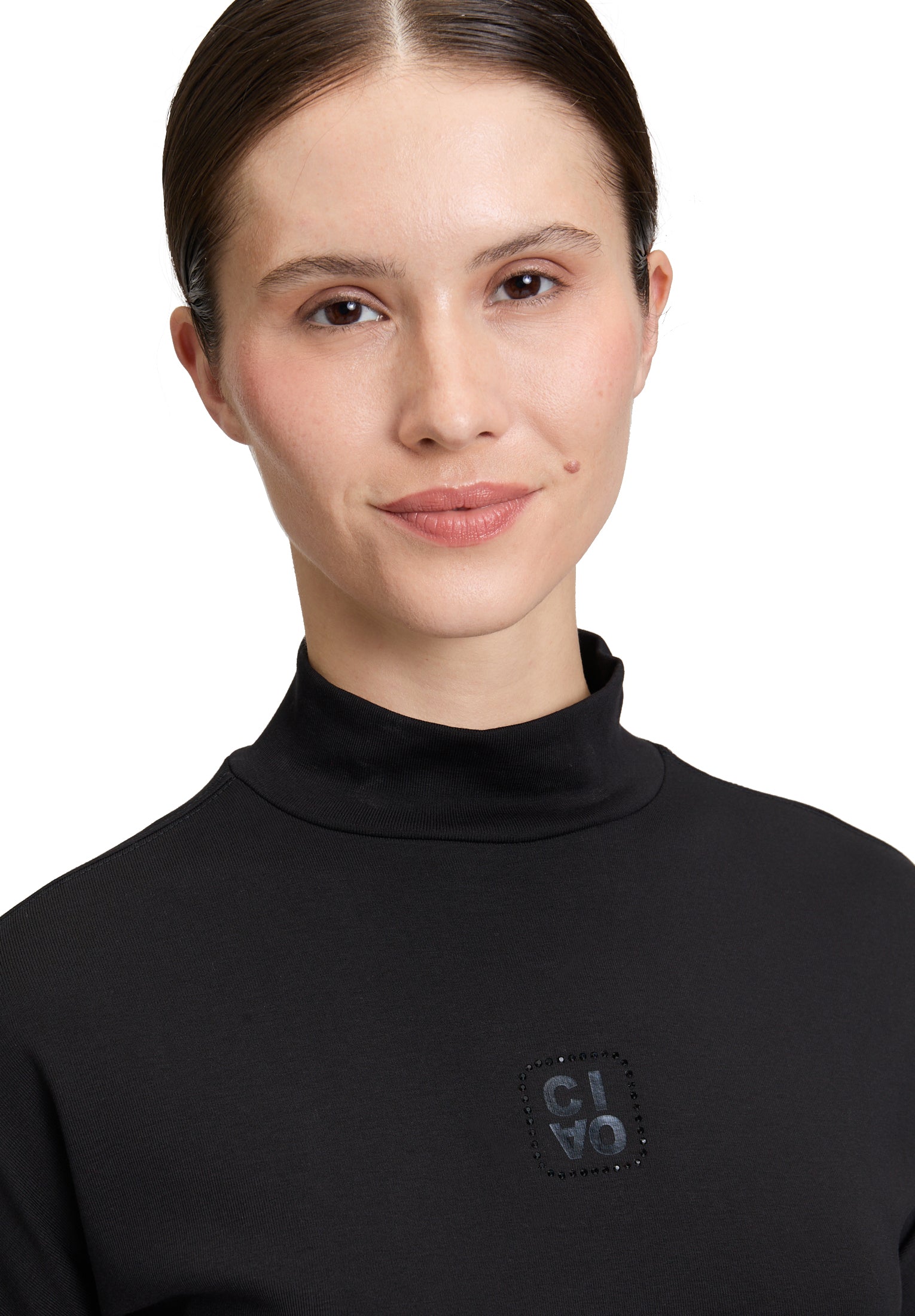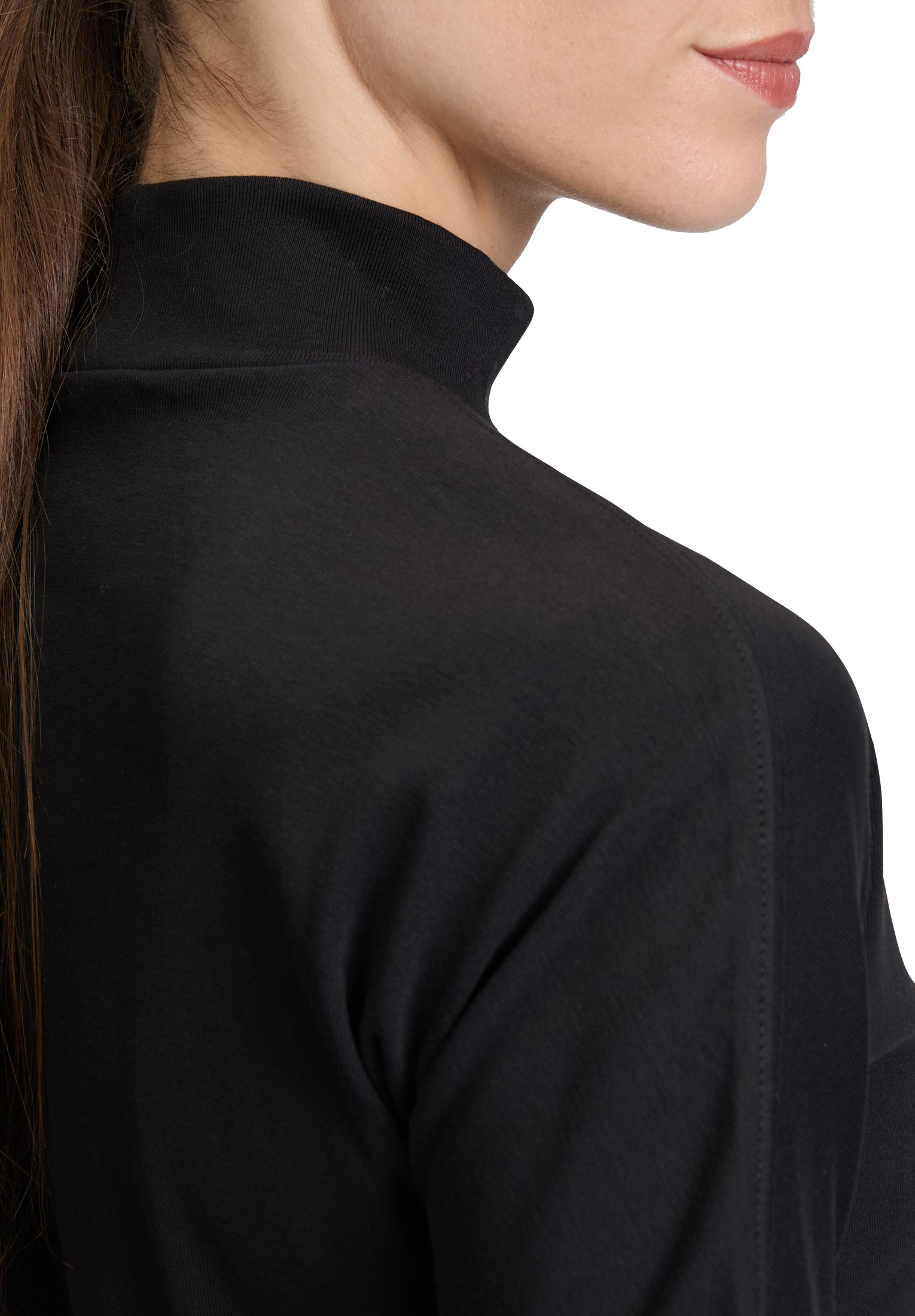 This fitted Betty Barclay Sparkle Front T-Shirt combines comfort with subtle elegance. Crafted from soft jersey fabric, it features a sleek stand-up collar and flattering mid-length sleeves. The plain-colored design is enhanced by a delicate sparkle detail on the front, adding a touch of glamour to your everyday look. With a length of 62 cm, it offers a perfect fit that complements your silhouette effortlessly. Ideal for dressing up or down, this T-shirt promises both style and comfort throughout the day.