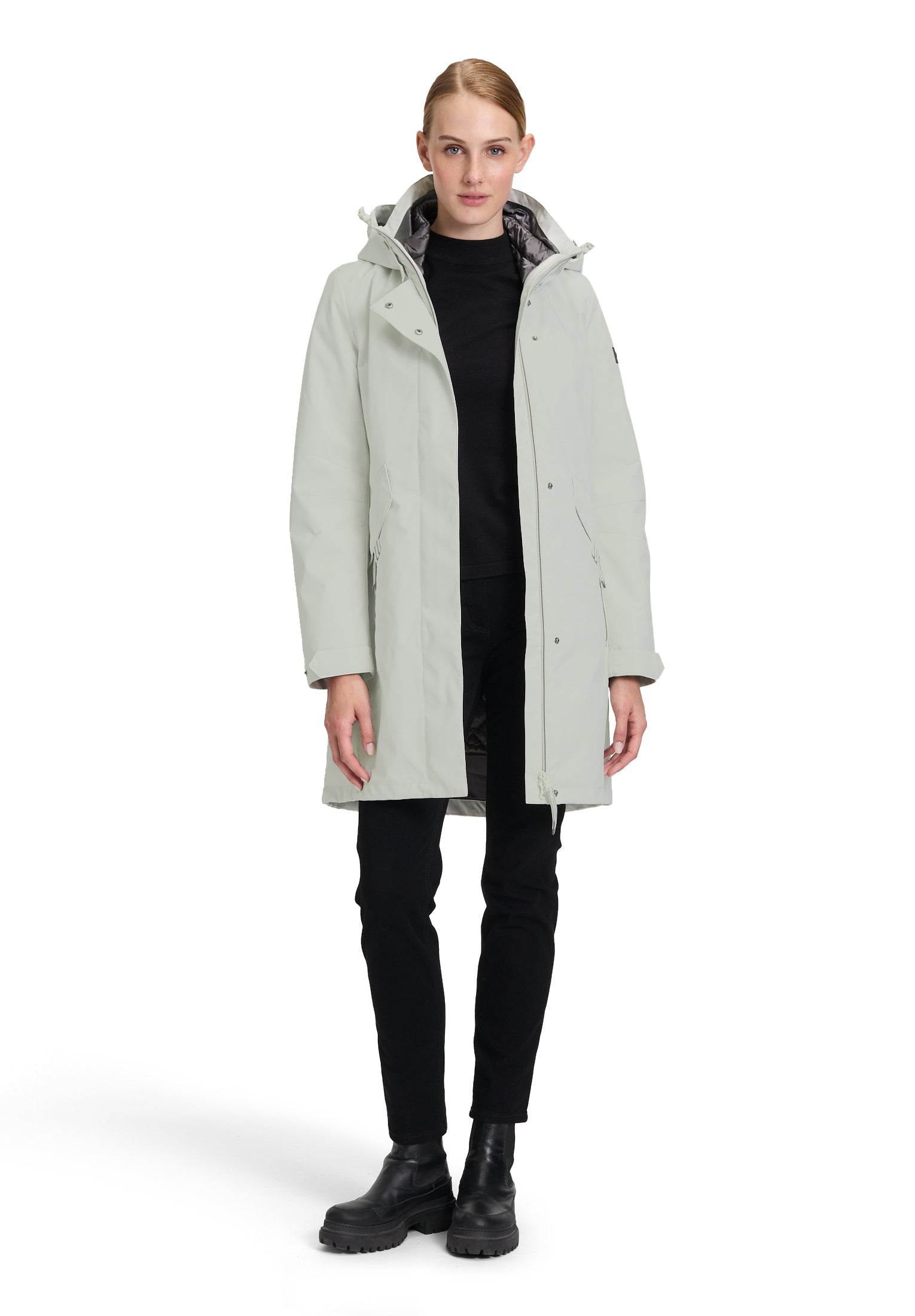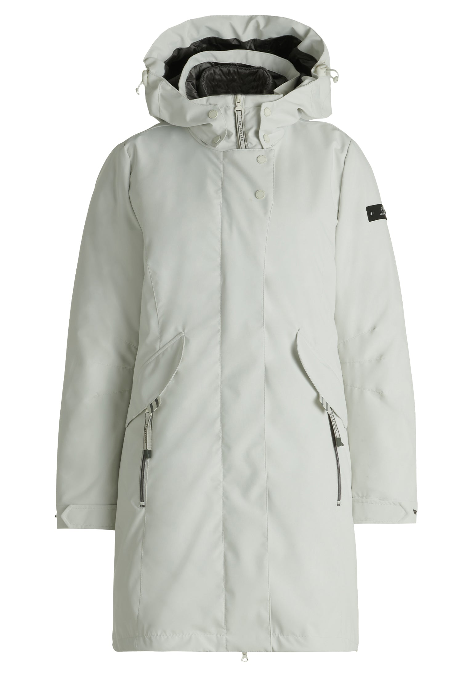 This Betty Barclay White 3 in 1 Coat combines style and versatility with a slightly fitted design for a flattering silhouette. Featuring a detachable hood with adjustable width, a stand-up collar, and secure zippered pockets, it offers practical details for everyday wear. The two-way zip and press studs provide easy fastening options. With a removable inner layer, you can adapt to changing temperatures by wearing it alone or combined with the outer shell for extra warmth. Crafted with polyester filling and lining, plus a nylon underpinning, this coat promises comfort and reliable protection.