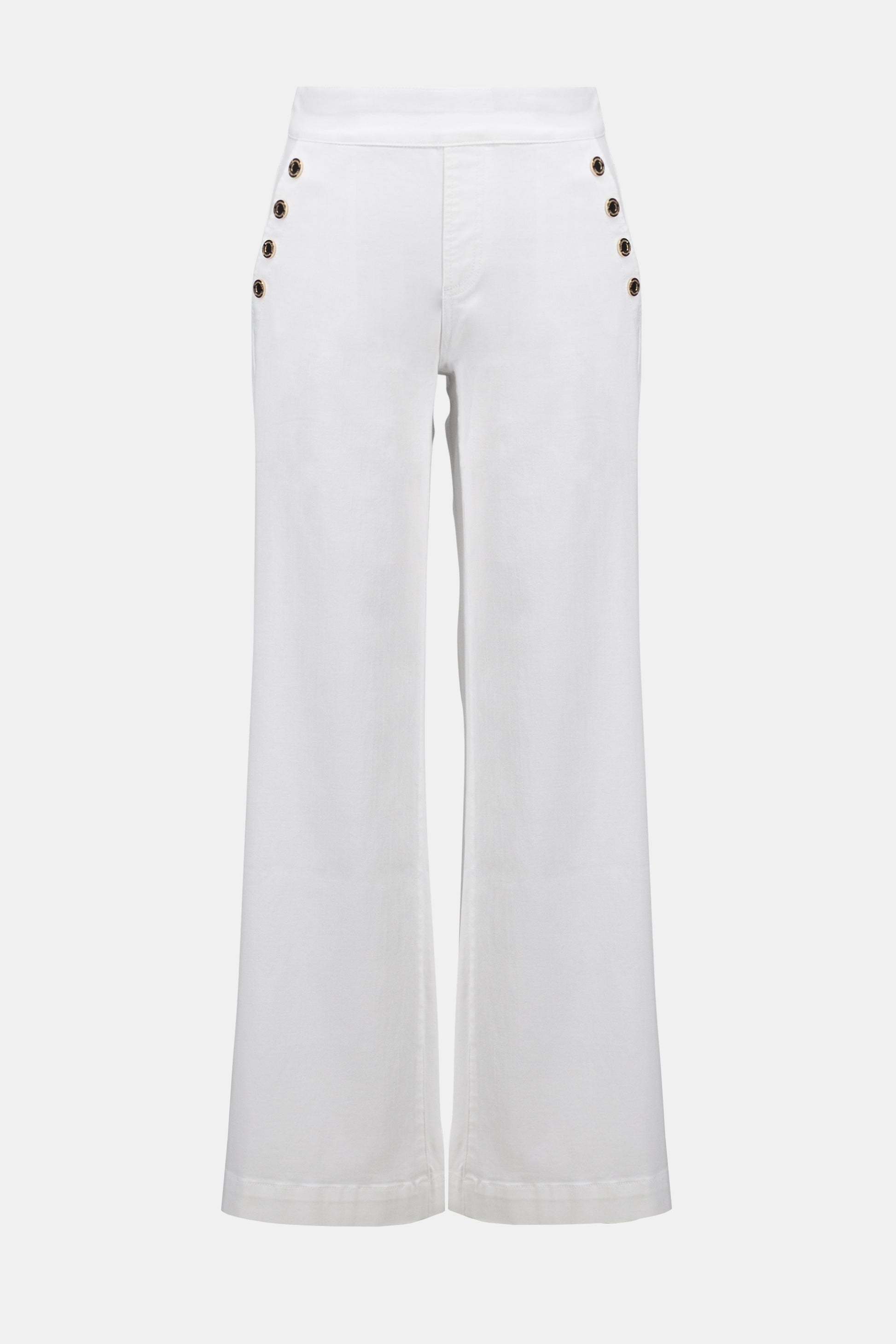 Utility style gets a polished refresh with these eco-friendly Repreve® denim wide leg pants, featuring a pull-on waistband, front snap pockets, and flap pockets at the back.