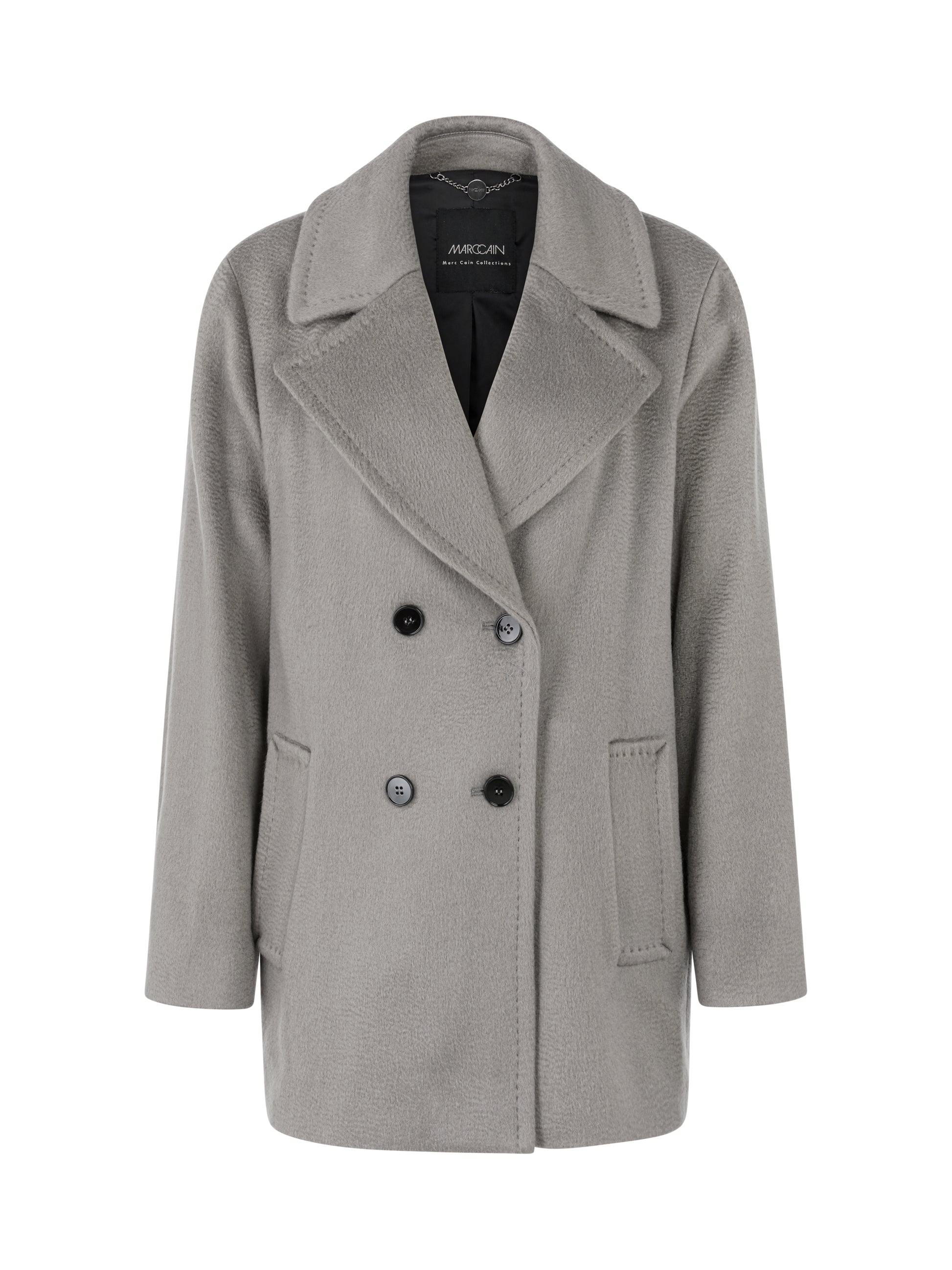 Elevate your winter wardrobe with the Marc Cain Collections Wool Coat. Crafted from a luxurious new wool and mohair blend, this double-breasted coat offers warmth and a softly structured egg-shaped silhouette. Featuring large lapels and practical side flap pockets, it combines timeless style with everyday functionality. Enjoy a comfortable, soft feel while making a confident, fashion-forward statement.