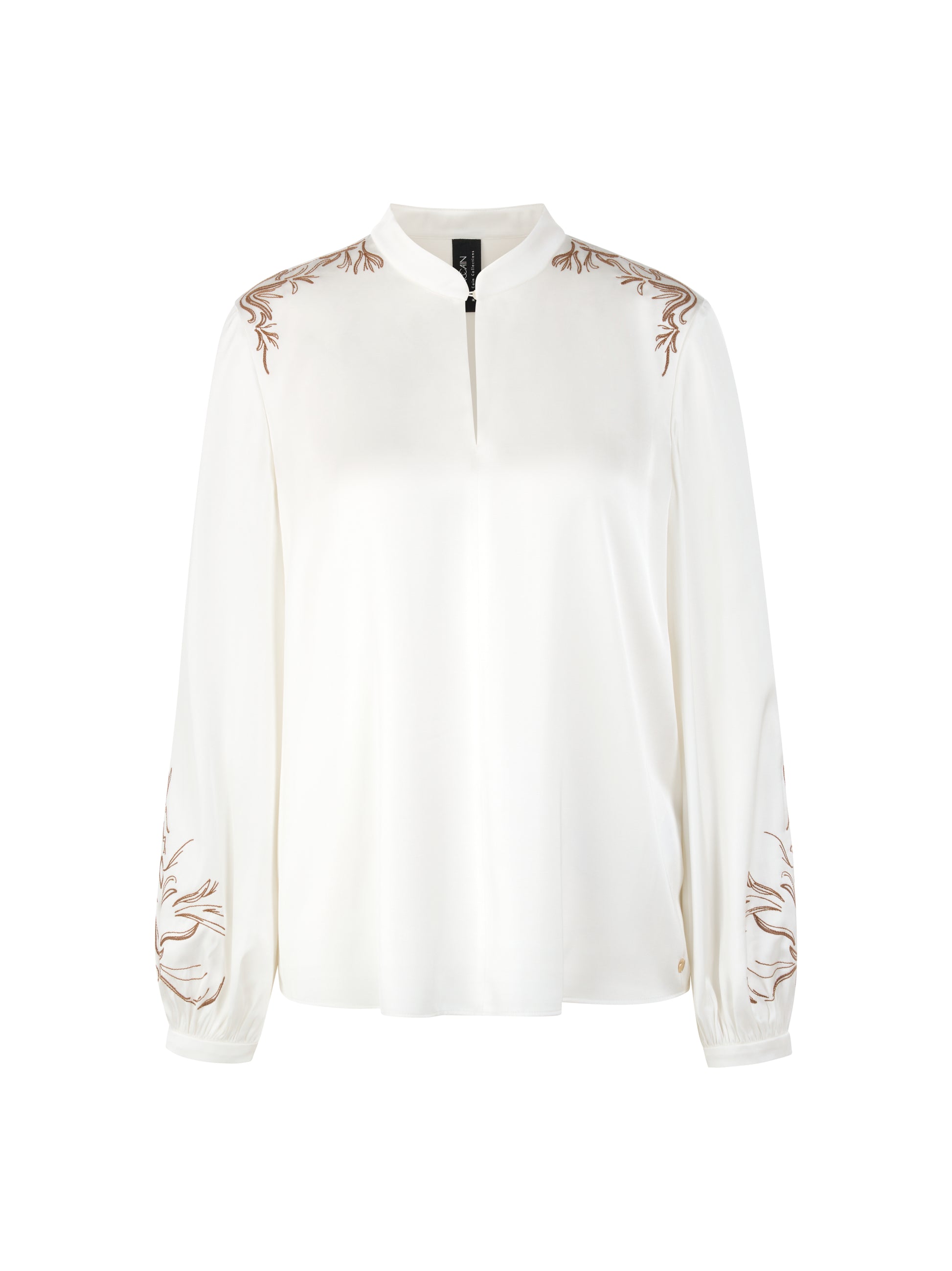 Elevate your wardrobe with this stunning viscose blend blouse, expertly designed for effortless elegance. The generously cut silhouette features dramatic voluminous sleeves that make a statement, balanced by refined narrow cuffs finished with delicate buttons. Intricate paisley embroidery adorns the fabric with sophisticated flair, while a charming button detail at the neckline adds a touch of feminine grace. Perfect for both professional settings and weekend styling, this versatile piece drapes beautifully and moves with you throughout the day.