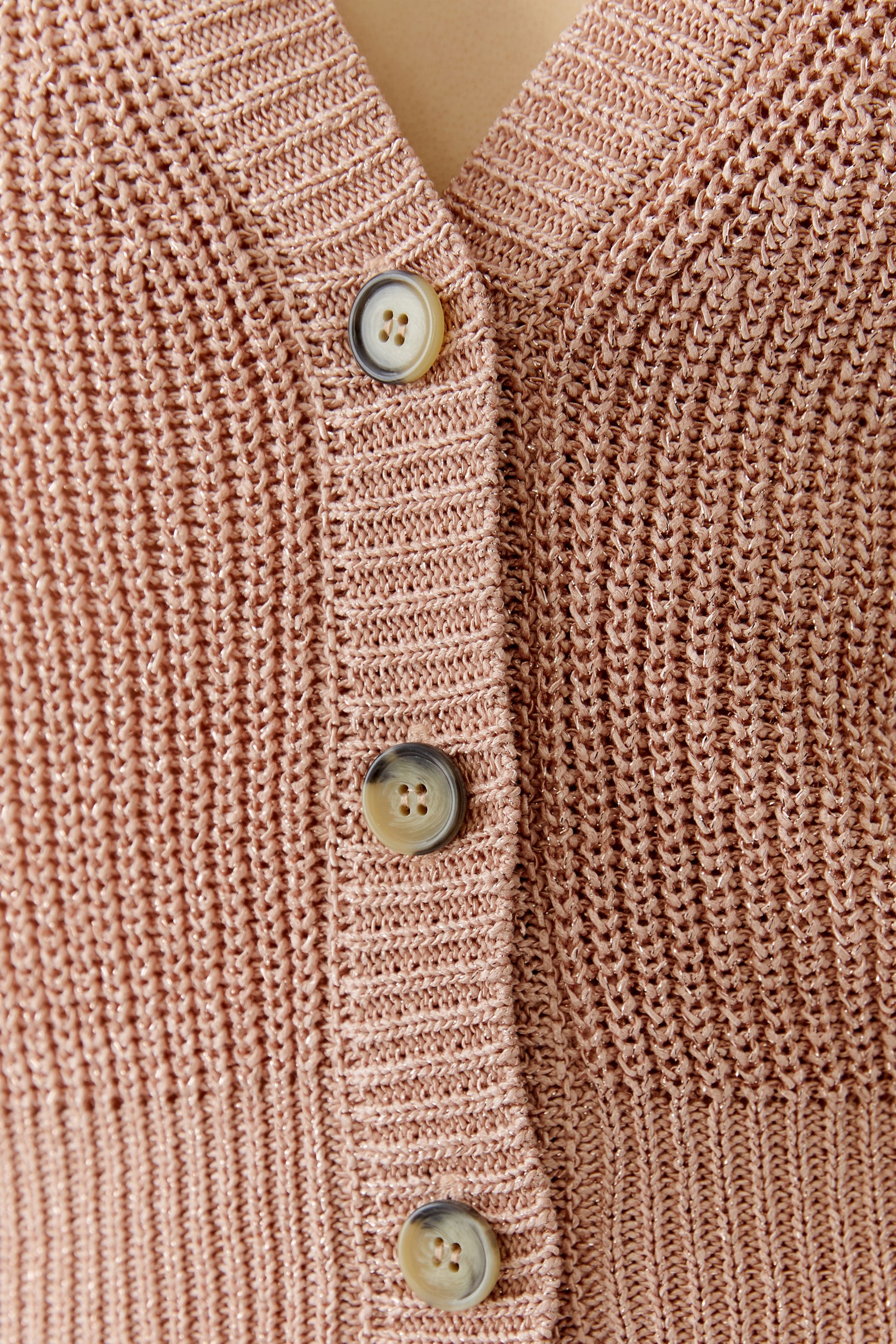 Elevate your everyday wardrobe with this stunning dusty rose cardigan that effortlessly blends sophistication with subtle glamour. The flattering V neckline and long sleeves create a refined silhouette, while delicate metallic threading catches the light with every movement, adding an understated sparkle to your look. The practical button-through front allows you to style it open as a layering piece or buttoned for a polished finish. Versatile enough for the office, yet special enough for evening occasions, this cardigan is the investment piece you'll reach for again and again.