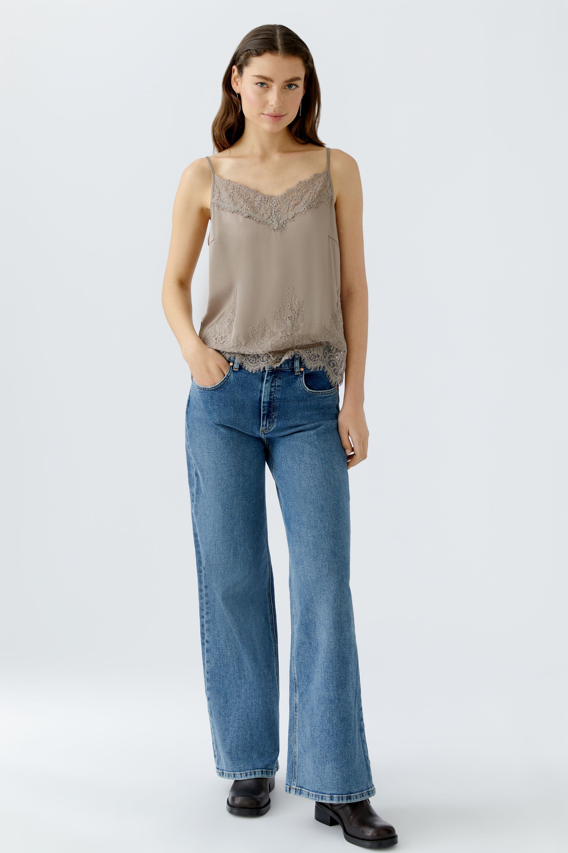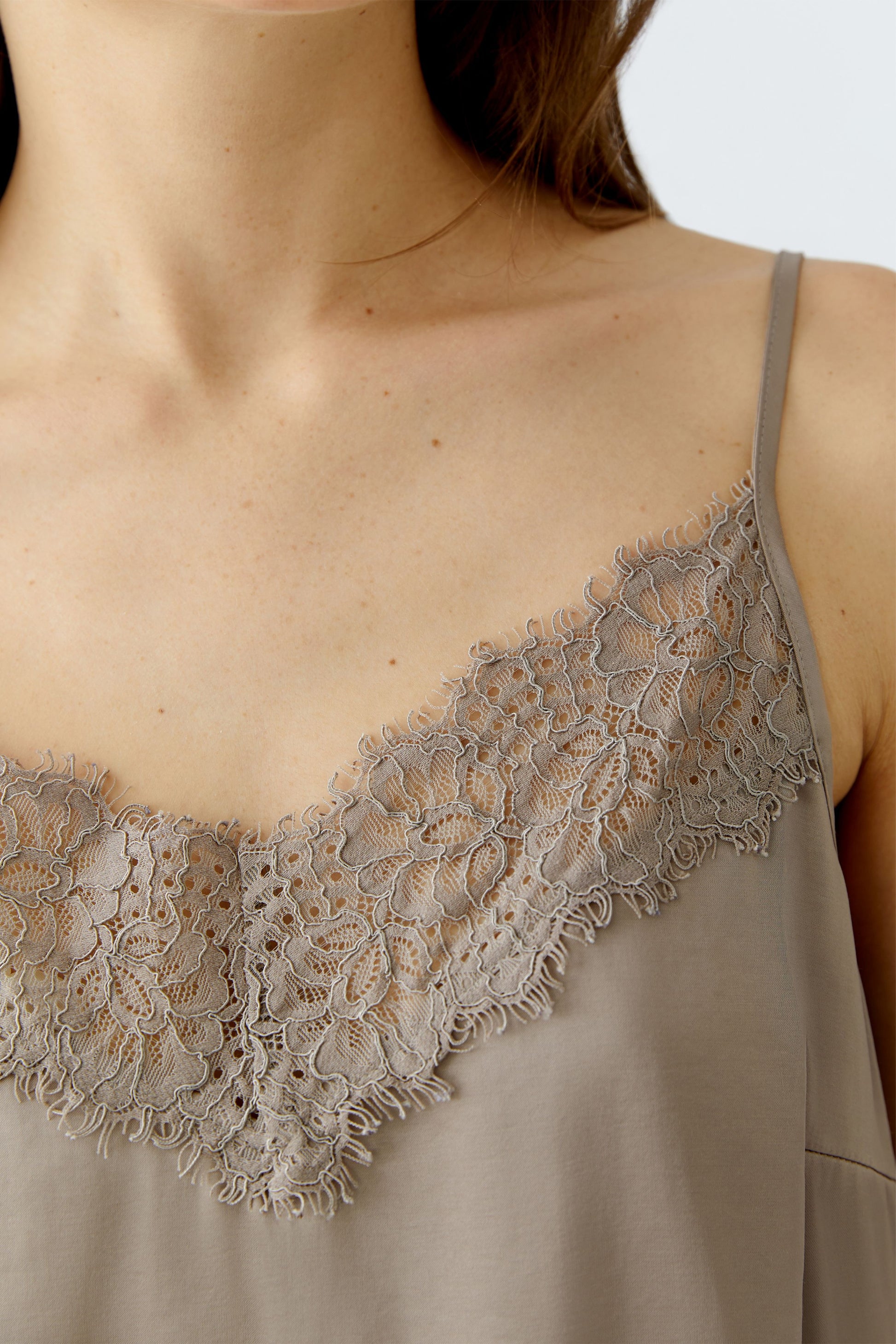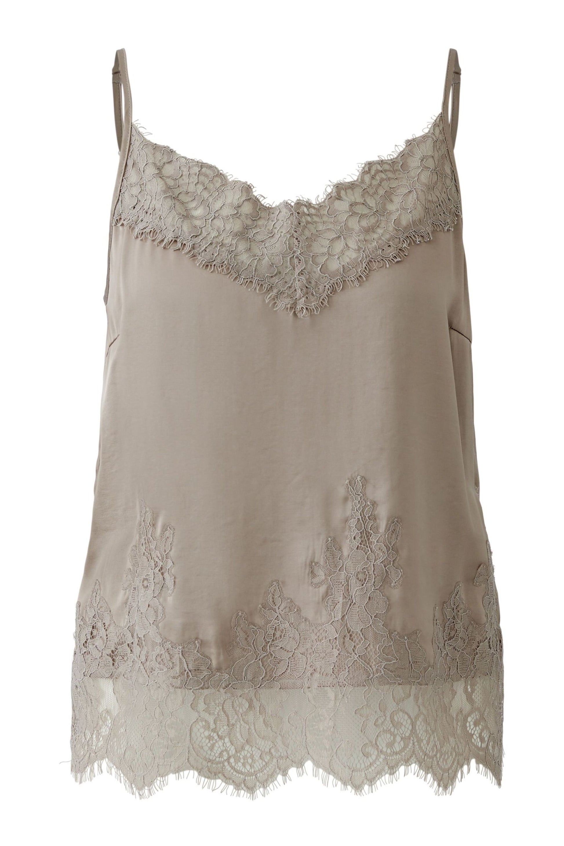 Elevate your layering game with the Oui Fungi Camisole, crafted from smooth satin and detailed with delicate lace at the neckline and hem. Its hand-cut straight silhouette and flattering V-neck front and back create a sleek, feminine look. Adjustable satin spaghetti straps ensure a perfect fit, making this camisole the ideal underlayer for cropped pullovers or to wear stylishly on its own. Experience comfort and elegance in one versatile piece.