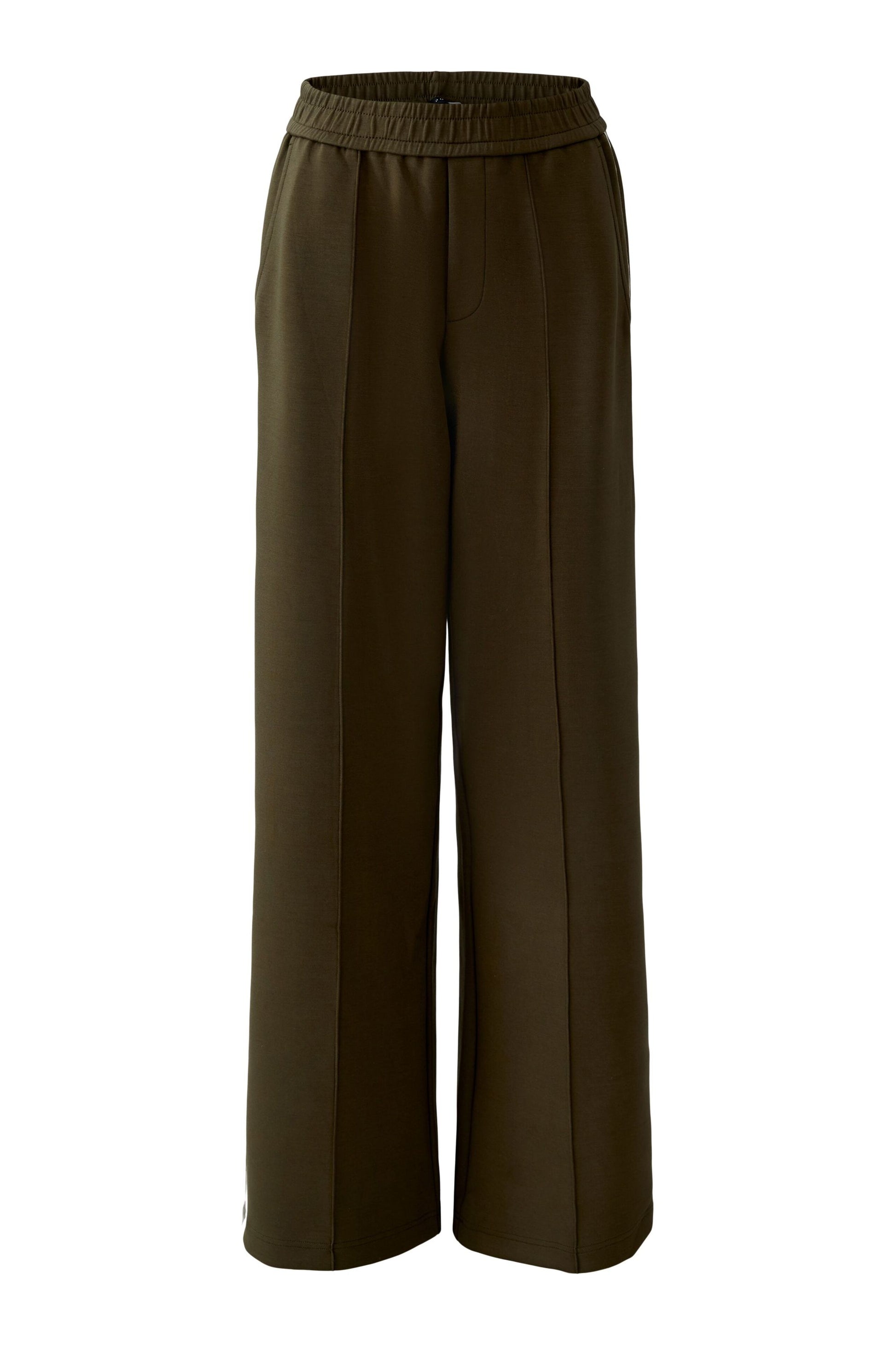 These Oui Side Stripe Trousers combine sporty style with everyday comfort. Crafted from a heavyweight scuba technical yarn blend, they offer a relaxed fit with a straight leg and regular length for easy movement. The comfortable elastic waistband ensures effortless slip-on wear, while contrast side stripes add a sleek, athletic edge. Practical side pockets and a patch back pocket keep essentials close, complemented by a sharp front pressed crease for a polished finish. Perfect for casual outings or relaxed weekends, these trousers elevate your laid-back look with functional style.