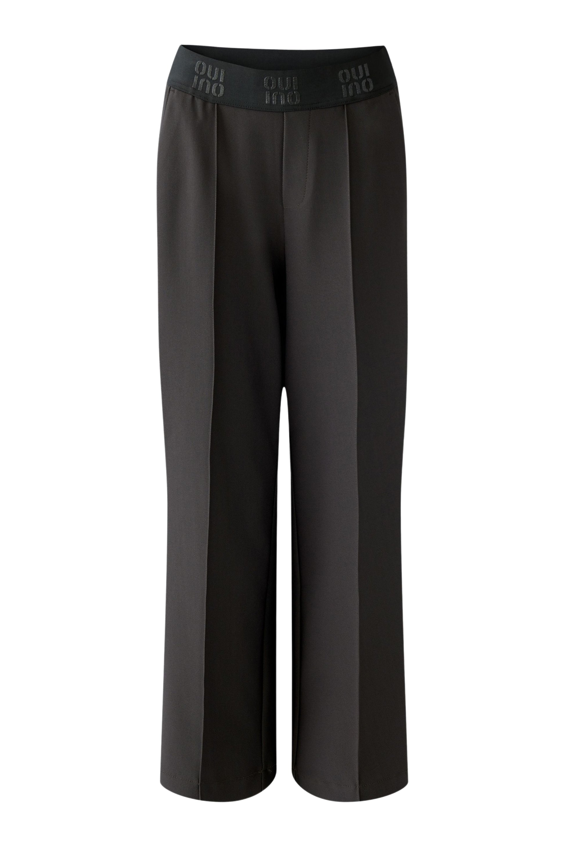 These Oui Twill Trousers combine style and comfort effortlessly. Crafted from an easy-care polyester and elastane blend in a diagonal ottoman weave, they offer a neat, straight-cut silhouette with a shortened culotte length. Slip them on easily thanks to the elasticated waistband featuring a subtle rubberised Oui logo print. Practical side pockets and a permanent front crease enhanced by quilted piping complete the look, making these trousers perfect for versatile wear throughout your day.
