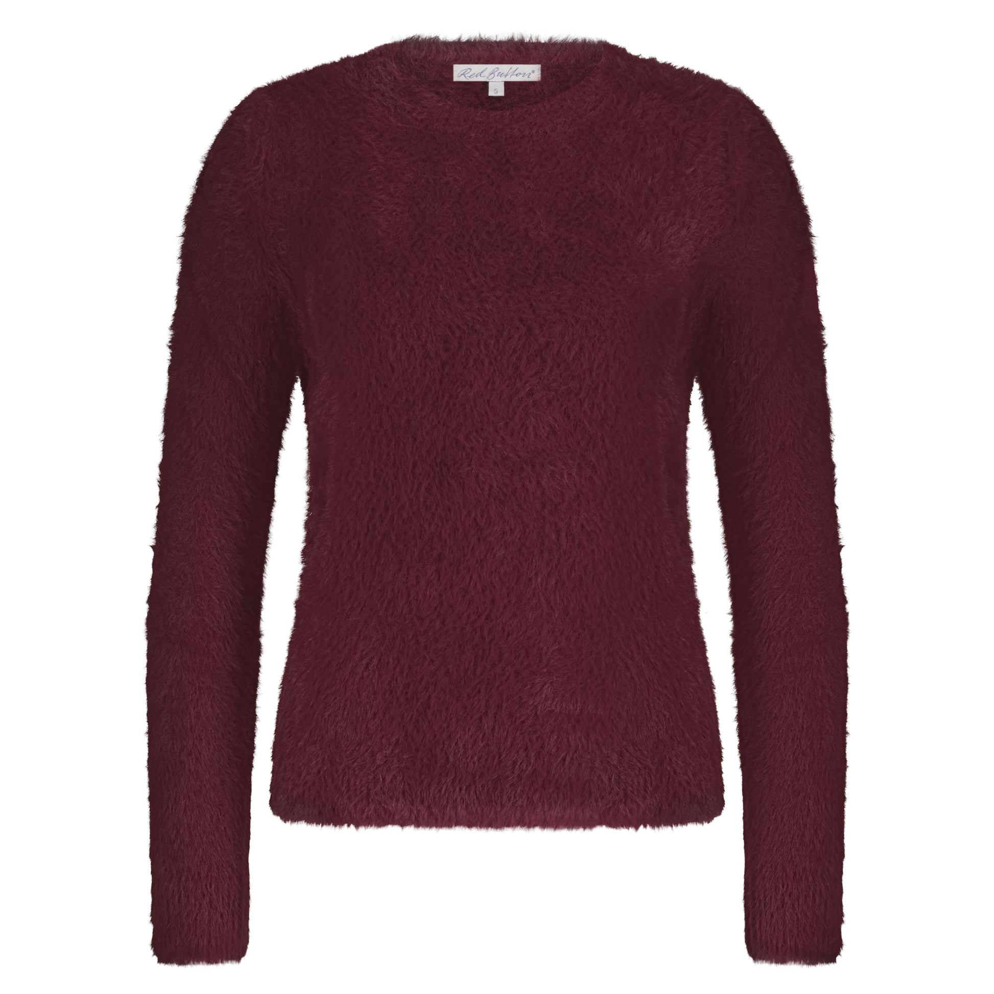 This burgundy sweater features soft, fuzzy knit fabric combining nylon, viscose, and polyester for a cozy yet durable feel. Its stylish puff sleeves and classic round neck add a flattering, feminine touch perfect for layering or wearing on their own, making it an effortless statement piece for cooler days.
