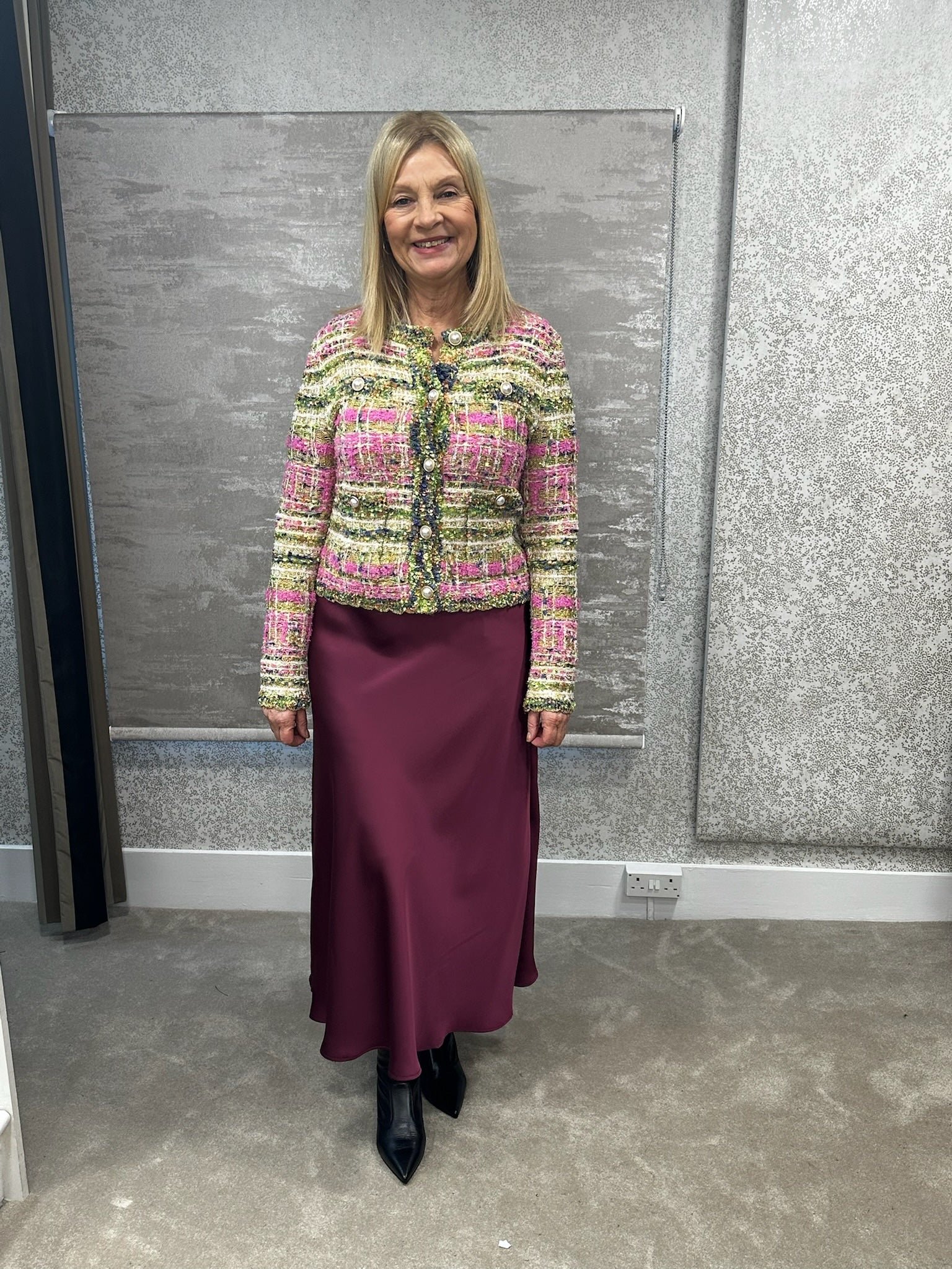 Indulge in luxury with our White Leaf Satin Skirt in Plum. Made from 100% polyester, this elegant slip skirt will flatter your figure with its side waist concealed zip and elasticated waistband. Whether you dress it up with heels and a dressy top or dress it down with trainers and a cozy sweater, you'll exude effortless style.
